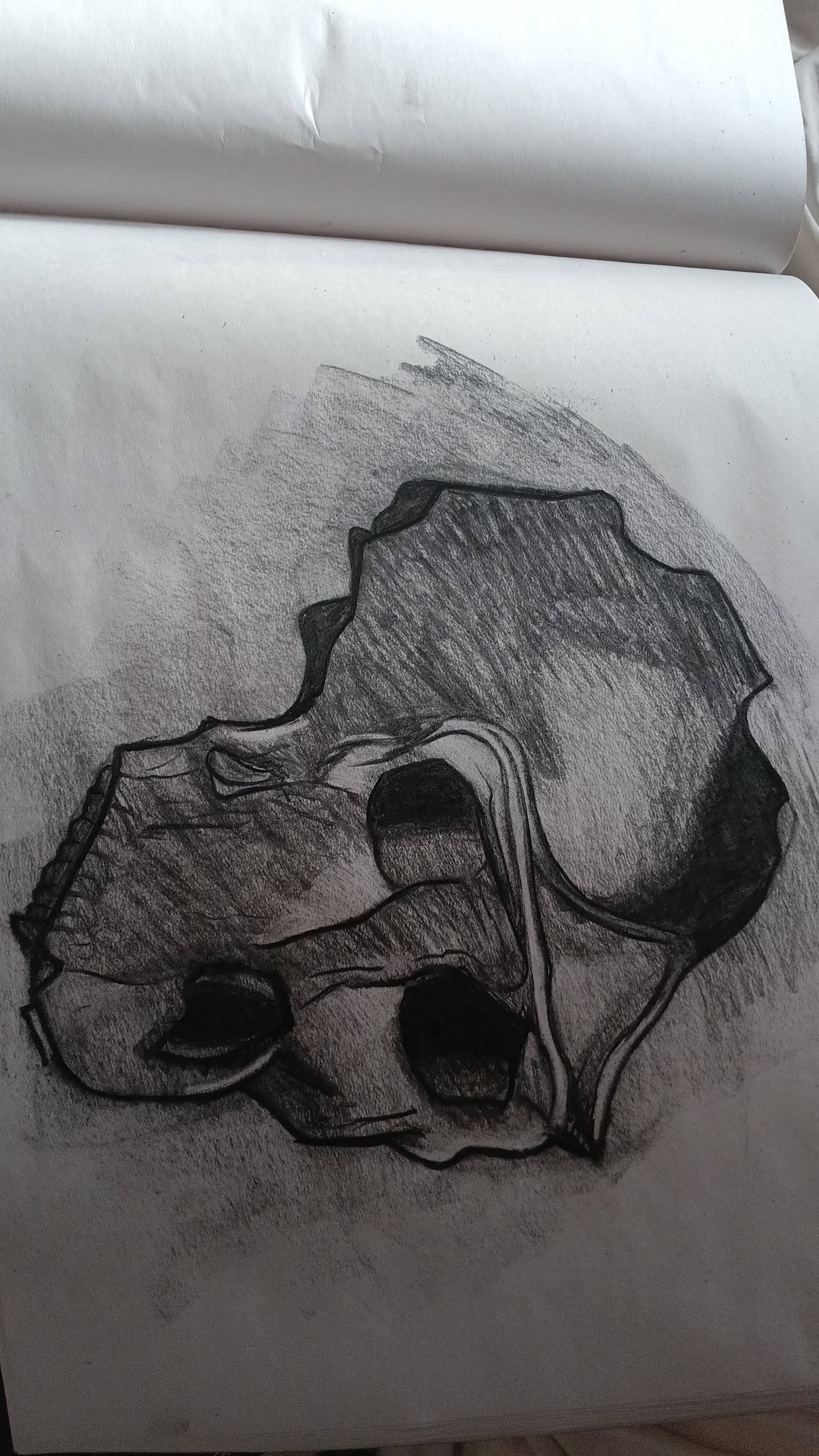 Here's a charcoal monkey skull I made for my drawing class.